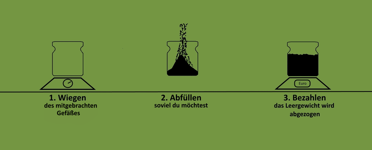 Keine Zeit zum selbst Abfüllen? Bringst uns deine beschrifteten Gefäße vorbei und wir füllen für dich ab: